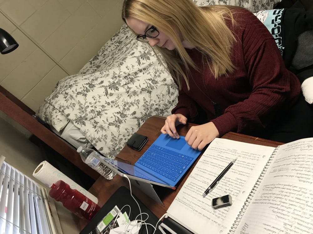 Eckerbom often studies in her room, not in the library. She does not have a roommate, so it is a good environment for her to study.