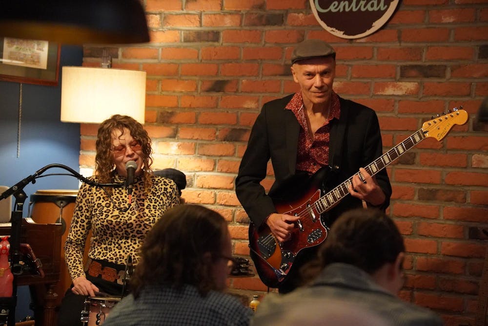 Lil’ Red (Jennifer Milligan) and The Rooster’s (Pascal Fouquet) preparing for their performance at Java Central. Photo taken by Ruby Jackson on Feb. 9, 2025.